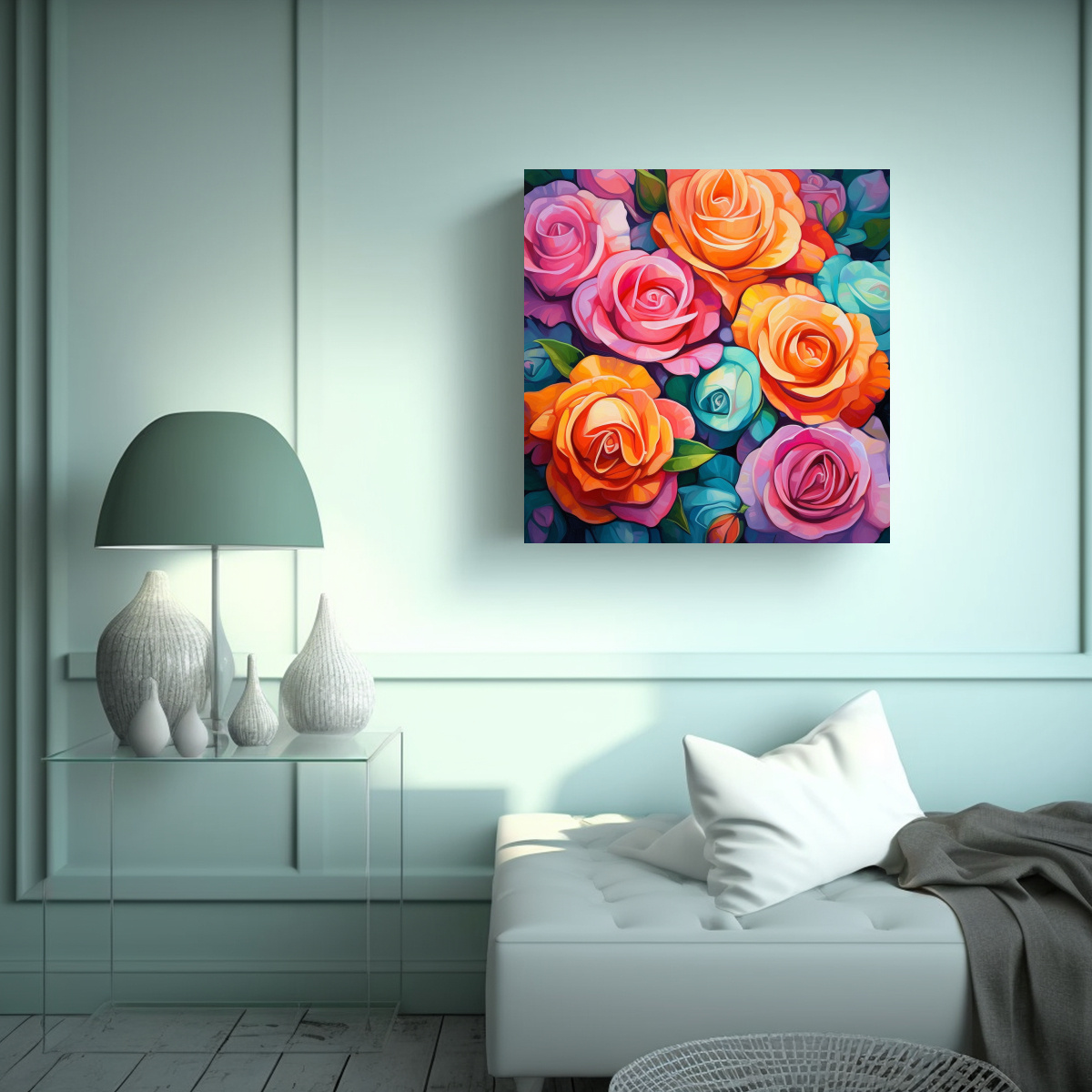 Cuadro Decorativo De Rosas Grandes Coloridas Y Estilizadas