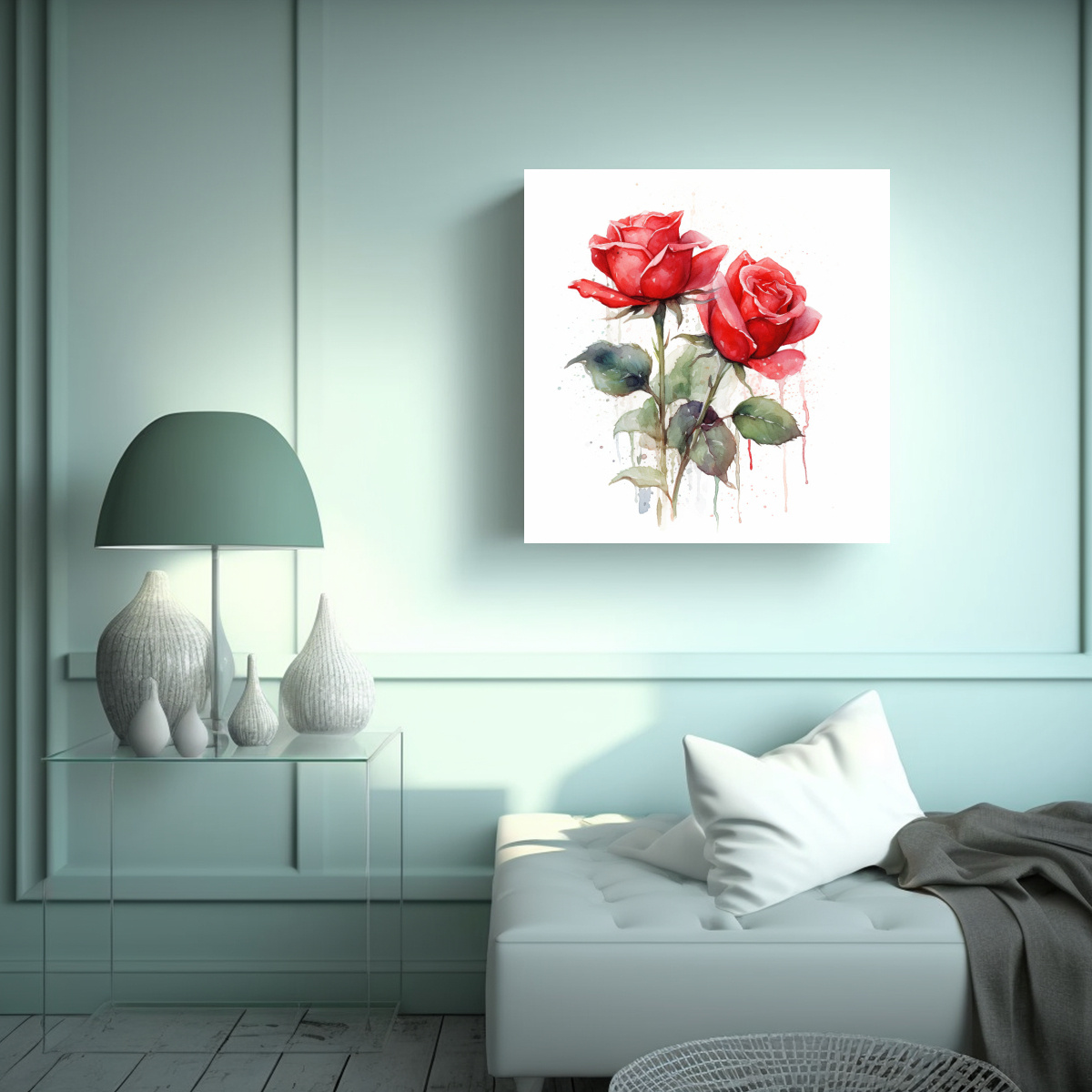 Cuadro Decorativo De Rosas Rojas En Acuarela Para Cuarto