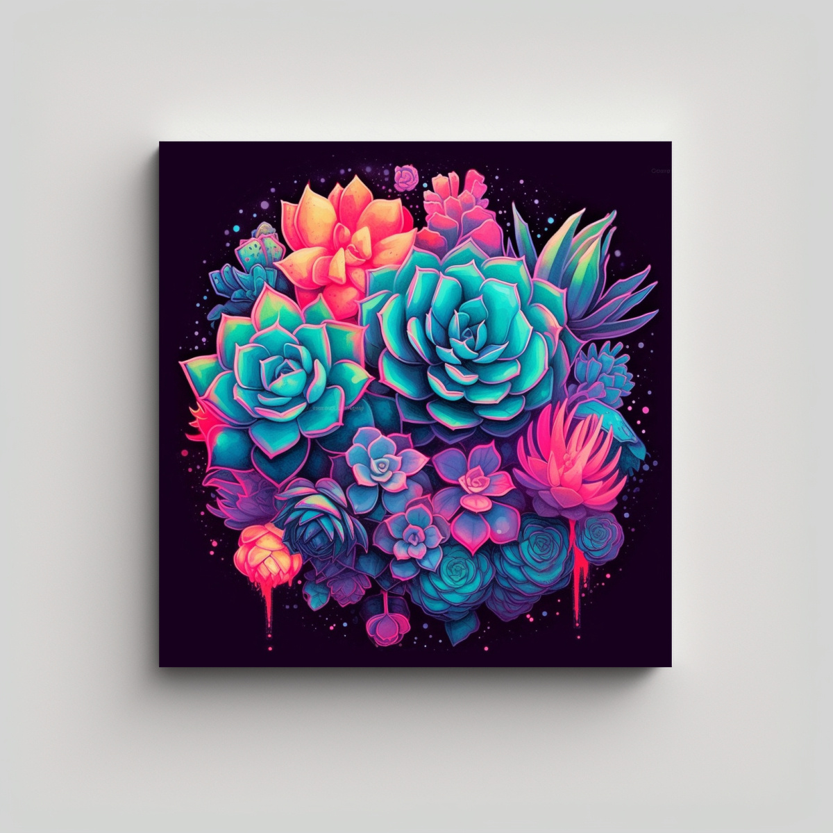 Cuadro Decorativo De Suculentas En Tonos Neón Para Salón