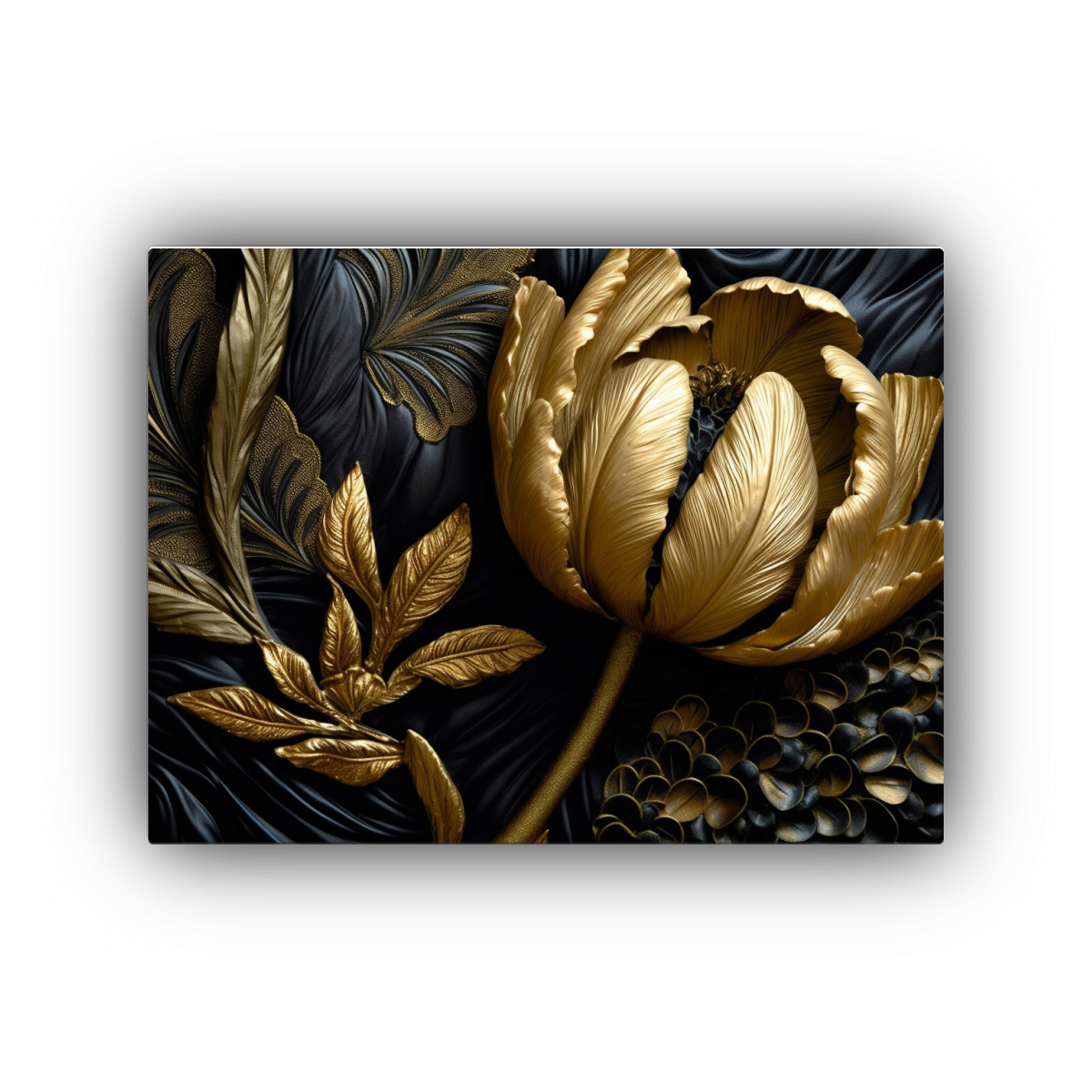 Cuadro Decorativo De Tulipanes En Tela Negra Con Detalles En 3D De Alta Resolución