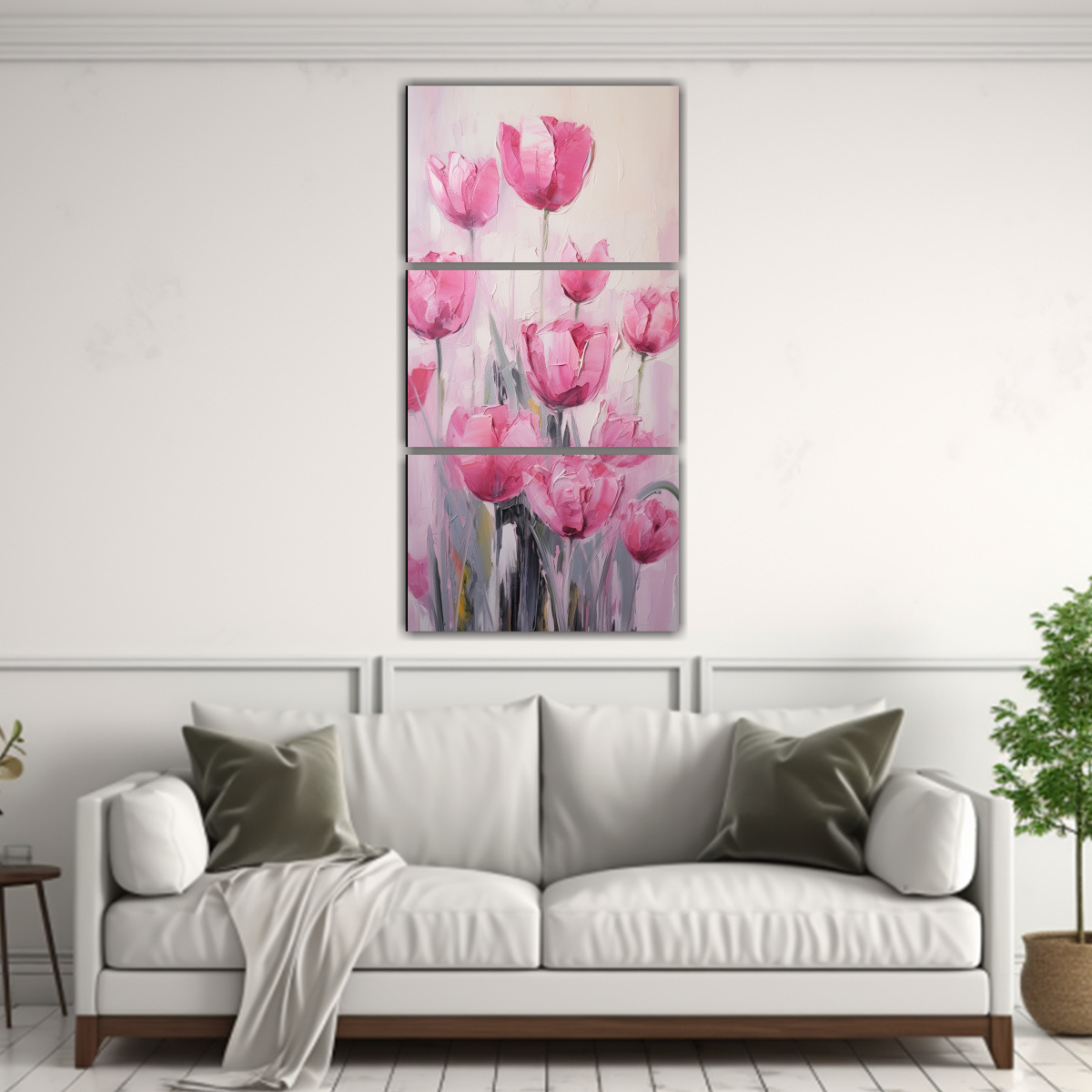 Este cuadro de tulipanes rosados en lienzo estilo composiciones finas es perfecto para decorar tu sala de estar, dormitorio o incluso tu oficina Combínalo con muebles en tonos neutros como blanco o beige para resaltar su belleza y agregar un toque de sofisticación a tu espacio