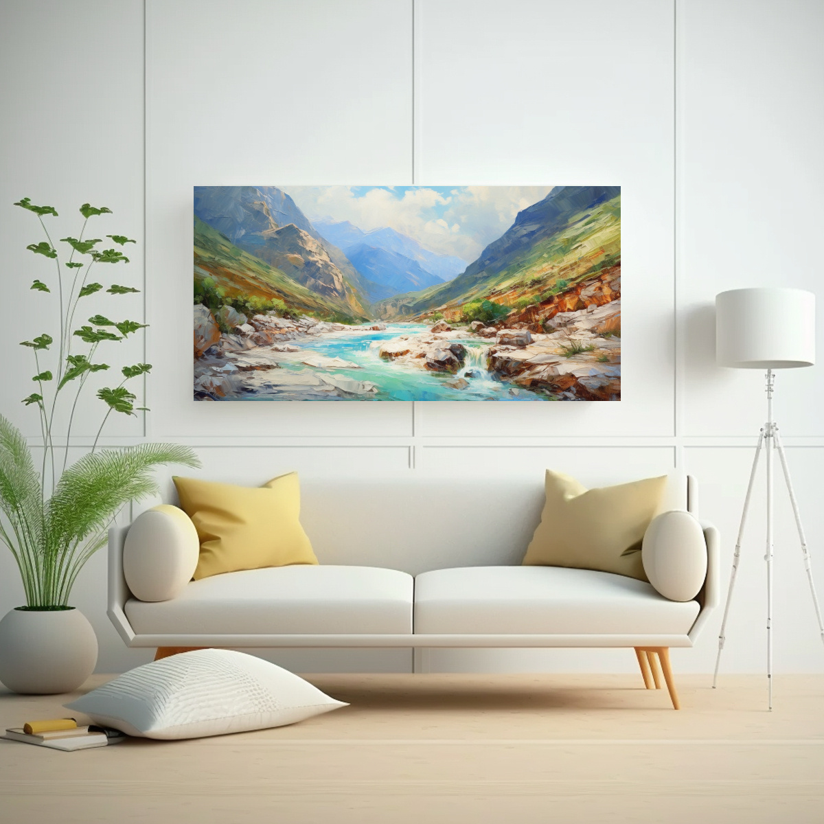 Canva Hermoso Innovador An oil painting of a stream flowing through a blue sky Dale un toque de elegancia a tu hogar con este diseño exclusivo Adorna tu sala de estar o tu estudio con esta obra que evoca tranquilidad y armonía