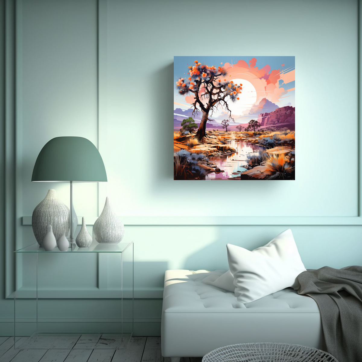 El Cuadro Decorativo Joshua Tree en Colores Pastel con Ambiente Neonoir es perfecto para darle un toque de estilo y sofisticación a cualquier ambiente Hecho con tela de alta calidad y bastidores de madera, este cuadro es la opción ideal para quienes buscan calidad y buen precio