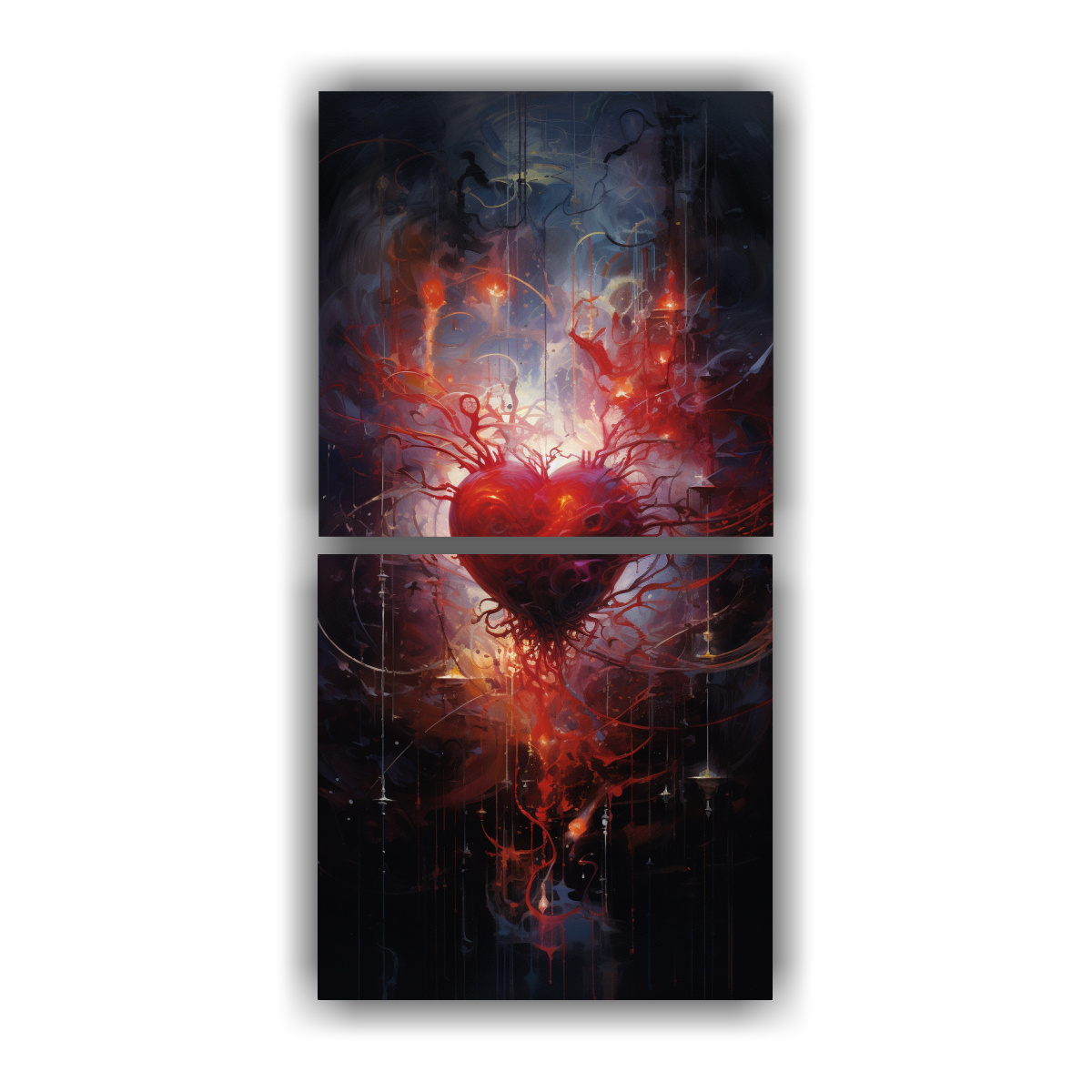 Cuadro Decorativo Díptico Inspiración Baño Rítmica Abstracción Visual Del Latido Del Corazón.