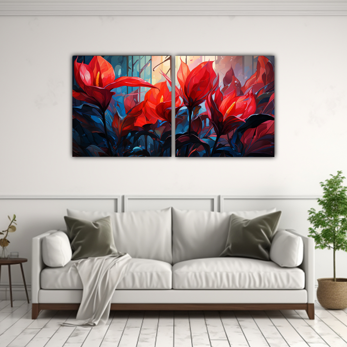 Este cuadro de hojas de Heliconia en colores rojos es ideal para decorar tu sala de estar, creando un ambiente moderno y sofisticado Te recomendamos colgarlo sobre un sofá negro o gris, para resaltar los tonos carmesí y plateado del cuadro Combínalo con cojines en tonos turquesa y lila, y agrega una alfombra en verde azulado para completar la armonía de colores Con esta combinación, lograrás un ambiente elegante y contemporáneo que sorprenderá a tus invitados