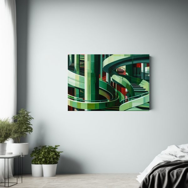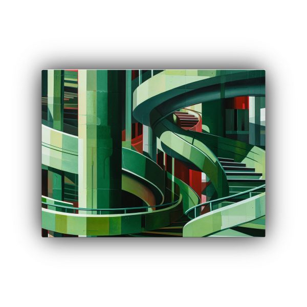 Cuadro Decorativo: Escalera Espiral Verde En Edificio En La Pared