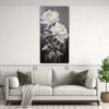 Este cuadro es perfecto para decorar una sala de estar o un dormitorio Combina muy bien con muebles de colores neutros como blanco o gris, creando un ambiente elegante y sofisticado Puedes colocarlo sobre un sofá o cama, creando un punto focal en la habitación Agrega cojines o cortinas en tonos plateados, azul marino o coral para complementar la decoración ¡Transforma tu espacio con este hermoso cuadro de peonías negras!