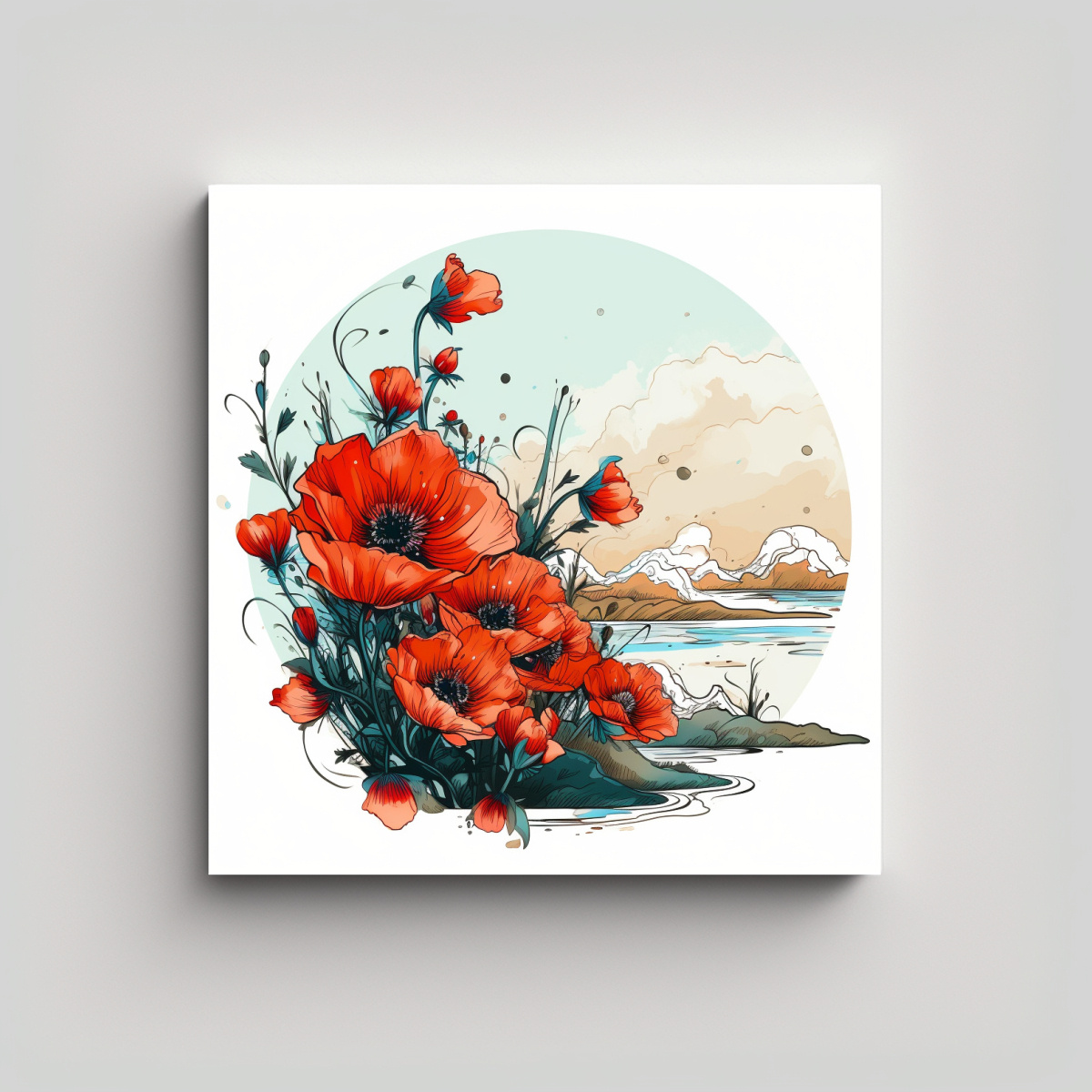 Cuadro Decorativo Estilo Japonés: Poppies En Arte Dibujo Para Cuarto