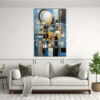 Este cuadro tríptico estilo k con líneas azules sería perfecto para decorar una sala de estar moderna Puedes colocarlo sobre un sofá gris claro para resaltar los tonos de azul y turquesa del cuadro Complementa la decoración con cojines en los mismos tonos y añade una alfombra de color coral para darle un toque de calidez al espacio