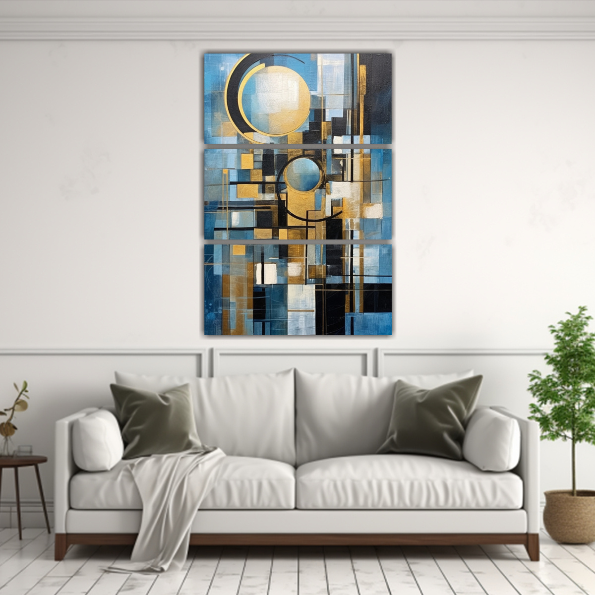 Cuadro Decorativo Estilo K Con Líneas Azules Tríptico Thanh Binh Por Mark Haas