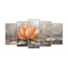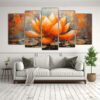 DecoCuadros te presenta este impresionante cuadro decorativo estilo pintura de loto en tonos naranjas, un set de 5 lienzos que agregará un toque de elegancia y sofisticación a tus espacios Los colores Azul Marino grisaceo, Coral, Plateado, Gris y Chocolate se combinan armoniosamente para crear una obra de arte llamativa y cautivadora Los cuadros están impresos en tela de alta calidad con bastidores de madera, lo que garantiza una excelente durabilidad y resistencia