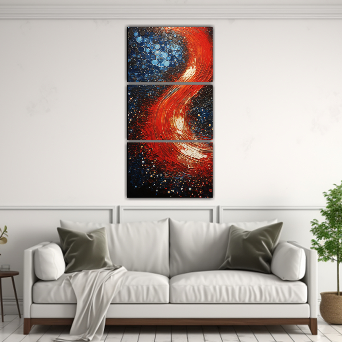 Cuadro Decorativo Estilo Puntillismo Luminoso: Tres Composiciones Líquidas.