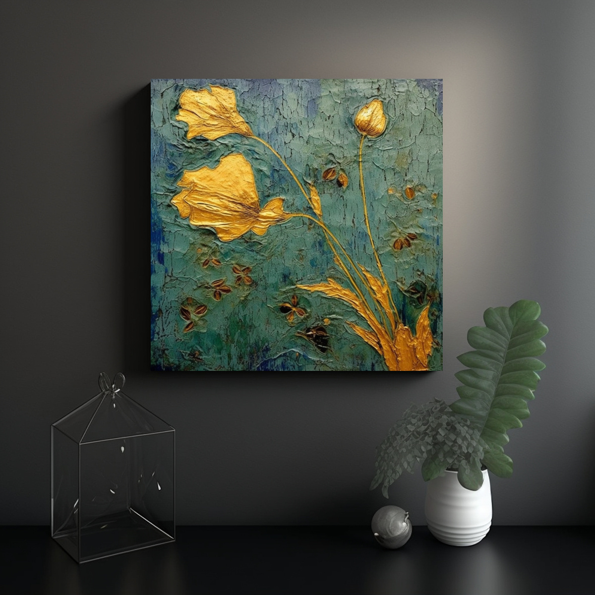 Cuadro Decorativo Estilo Van Gogh Con Motivos De Oro Y Flores Del Siglo XIII.