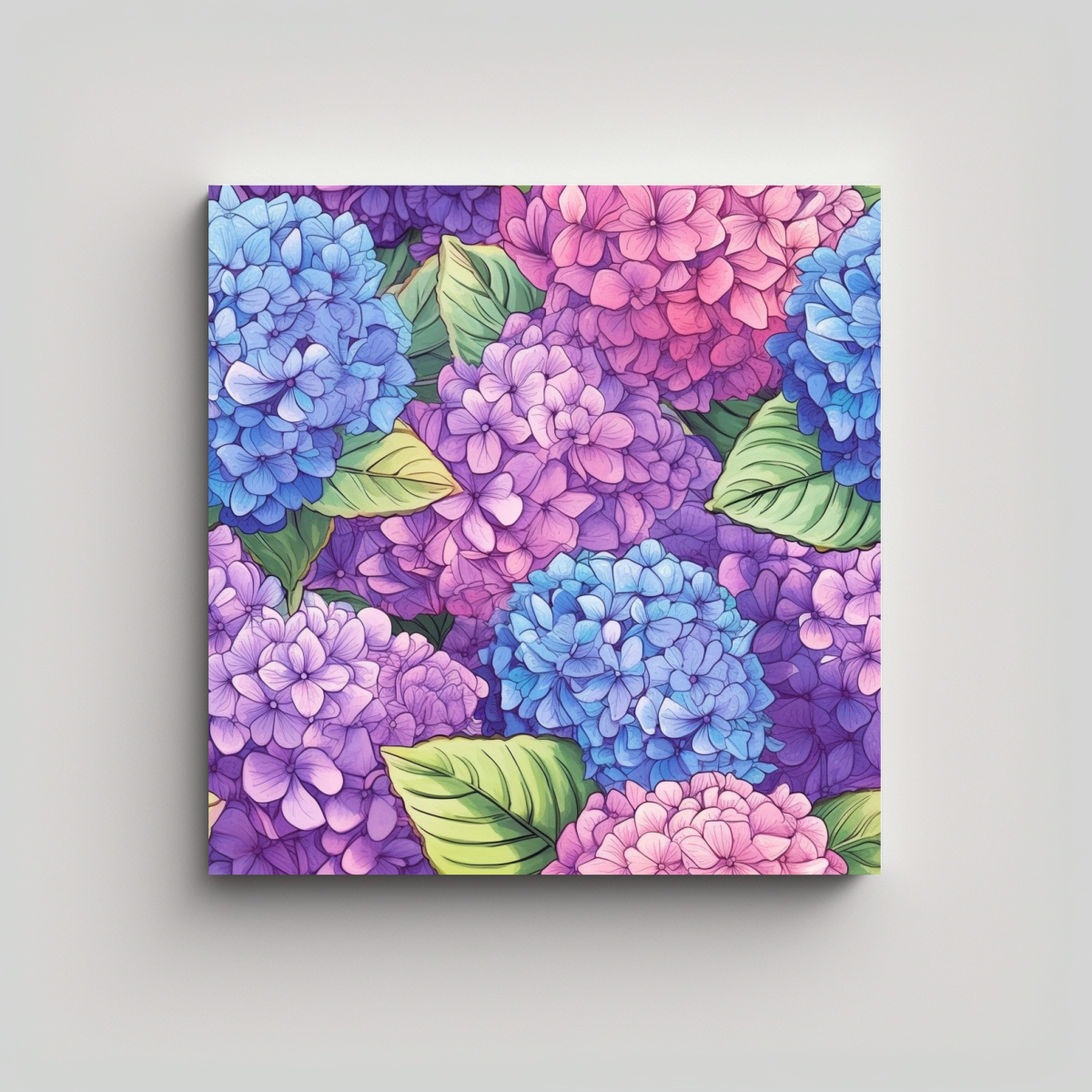 Cuadro Decorativo Expresión Habitación: Patrón De Hortensias En Canva