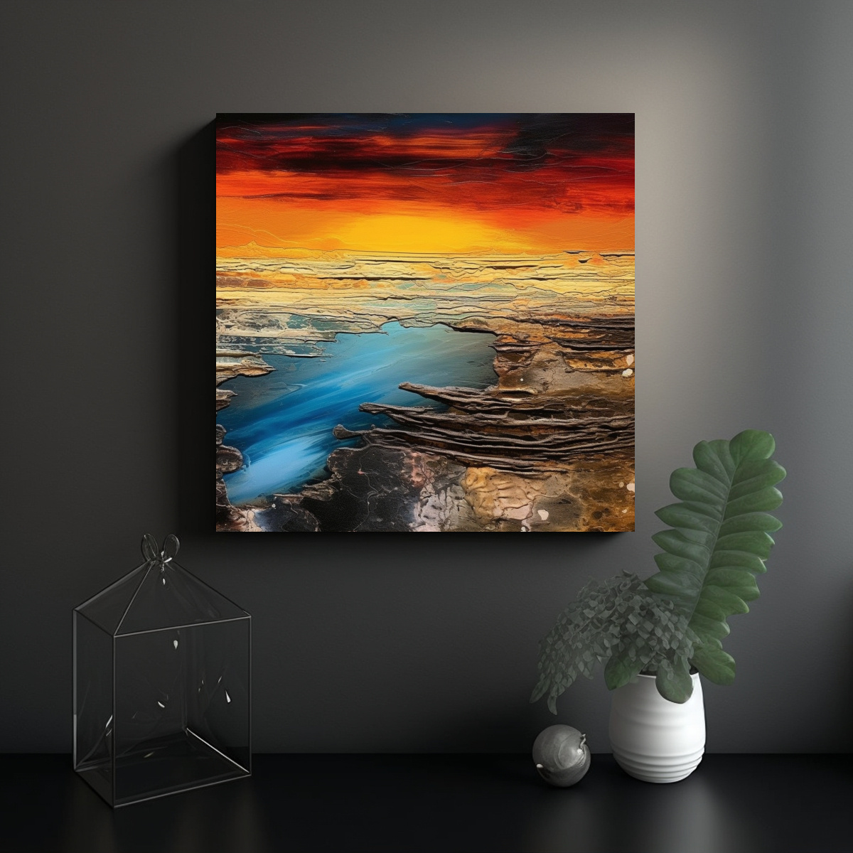 Coloca este hermoso cuadro en el centro de tu sala para crear un punto focal impresionante Combina los tonos de la imagen con cojines y accesorios en Coral, Turquesa y Menta para una decoración coordinada y elegante