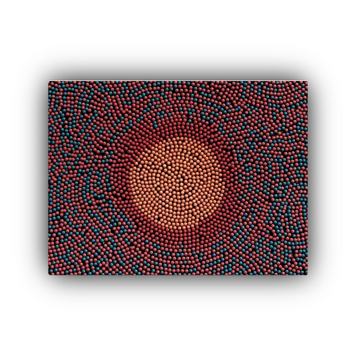 Renueva tu espacio con este cuadro geométrico de puntos microscópicos en una paleta de colores vibrantes Ideal para dar un toque moderno a tu sala de estar, dormitorio o estudio