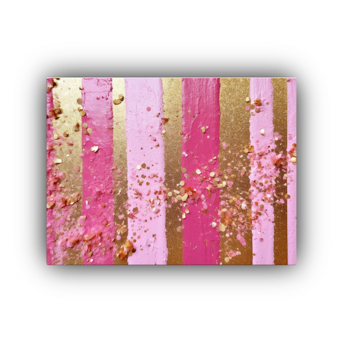 Cuadro Decorativo Hermoso Lienzo Simetría Rosa Sobre Fondo Rayas Doradas Con Brillo
