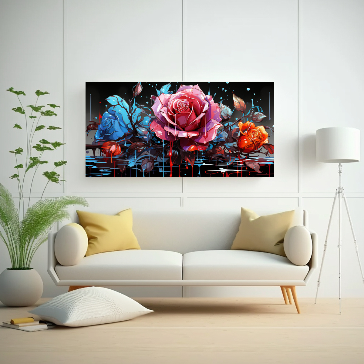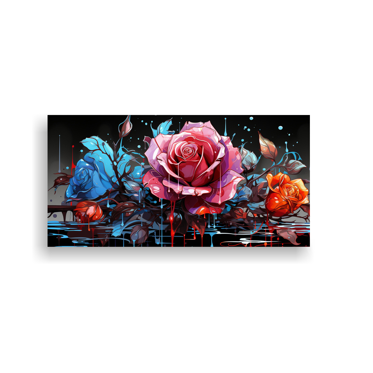 Impreso en tela de alta calidad con bastidores de madera, nuestro Cuadro Decorativo Hogar Deco rosa con goteos pintados en los pétalos es una opción única para embellecer tu hogar Con la entrega más rápida y gratuita en Santiago y envíos express a regiones, no pierdas la oportunidad de tener una pieza de arte única en tu hogar Combínalo en cualquier lugar, desde el salón hasta el dormitorio, y crea un ambiente acogedor y sofisticado