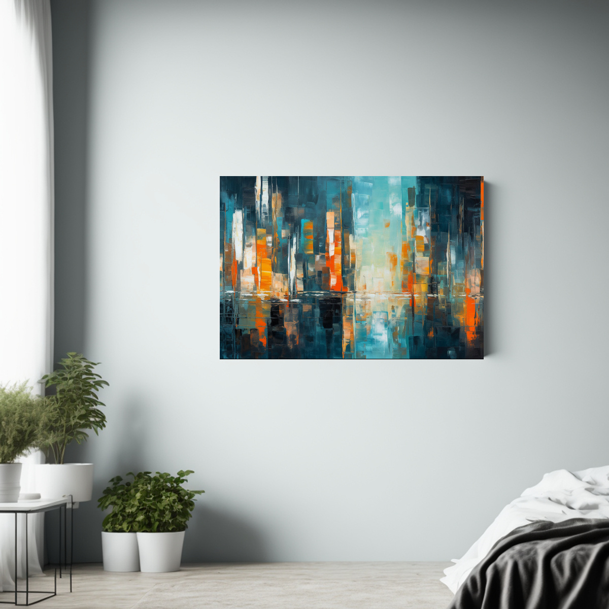 Cuadro Decorativo Impacto Visual Textura Ciudad Bremen Azul Marino Naranja Oscuro