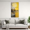 Cuadro Decorativo Impreso En Lienzo Con Temática Amarilla, Verde Azulado Y Plateada