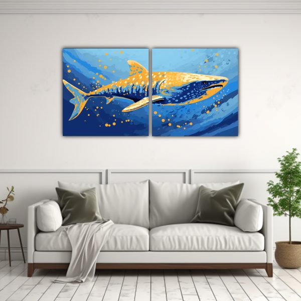 Cuadro Decorativo Intenso De Tiburón Ballena En Colores Maíz Y Aguamarina