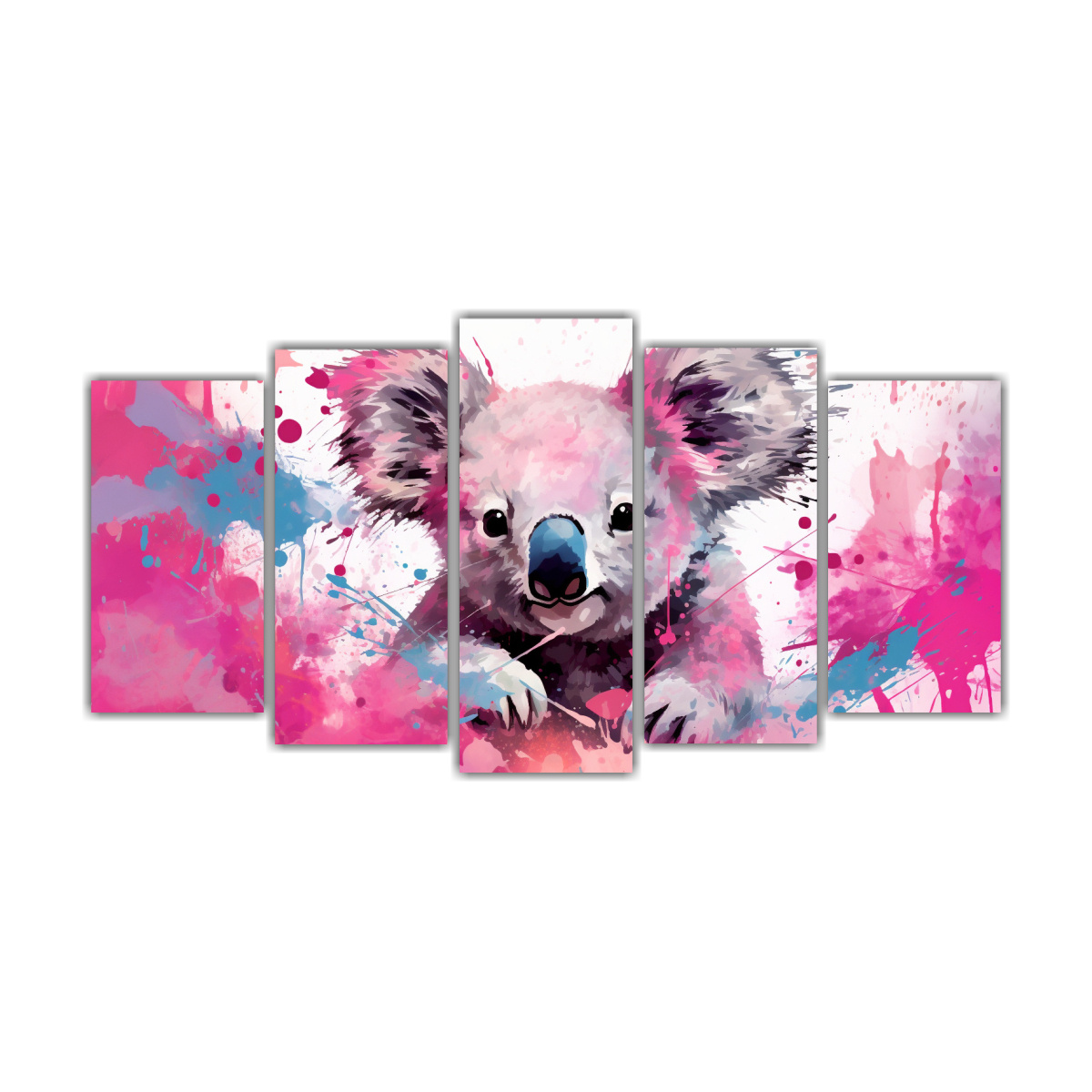 Cuadro Decorativo Koalas En Colores Saturados Y Rosa Bebé Neo Pop Art
