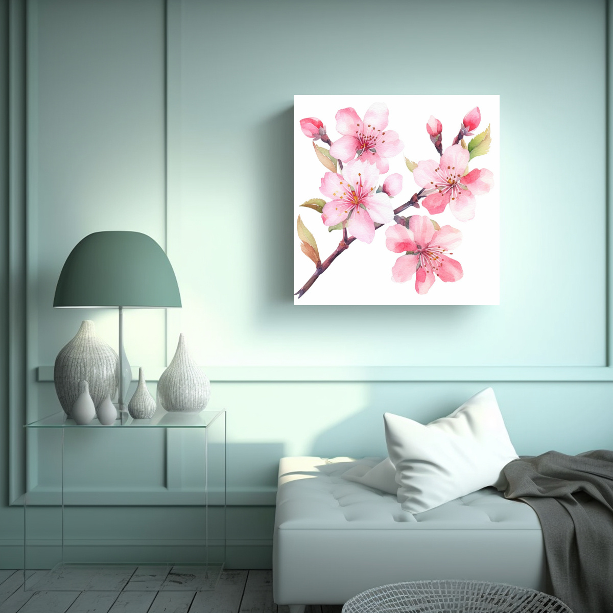 Cuadro Decorativo Lienzo Dreamy: Contraste De Cerezos En Acuarela