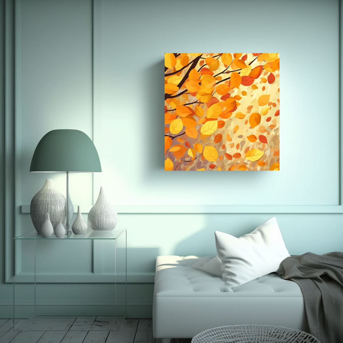 Este cuadro Lienzo Imagen Artesanal hojas cayendo abstracto se vería perfecto en la sala de estar, sobre un sofá de color neutro Sus colores vibrantes como el Amarillo Claro, Dorado y Coral aportarán calidez y alegría al ambiente Combínalo con cojines en tonos azules y grises para crear una armonía visual También puedes colocarlo en el dormitorio, sobre la cama, para darle un toque de color al espacio ¡Atrévete a decorar con estilo con DecoCuadros!
