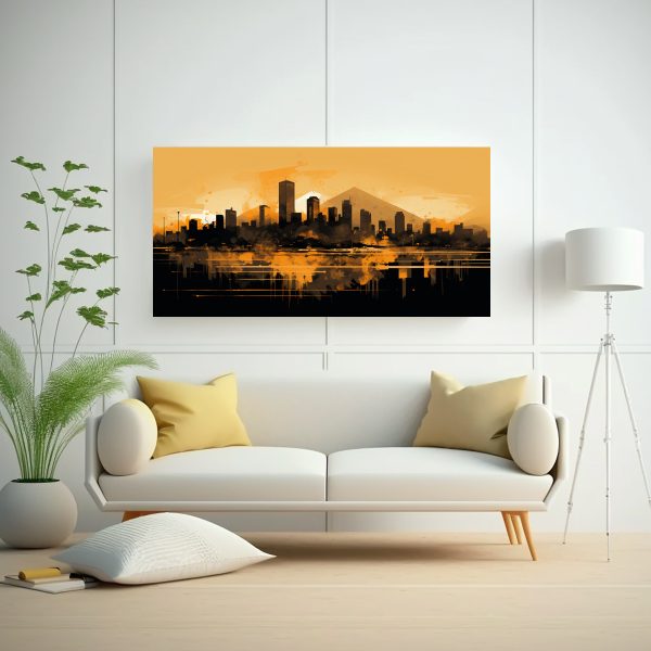 Una excelente idea para decorar con este cuadro es colocarlo sobre un sofá de color beige o marrón claro, creando un punto focal en tu sala Complementa con cojines en tonos dorados y cortinas en colores neutros para lograr un ambiente cálido y acogedor