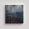Cuadro Decorativo: Líneas Azules Y Gotas Rojas En Fondo Gris Translúcido