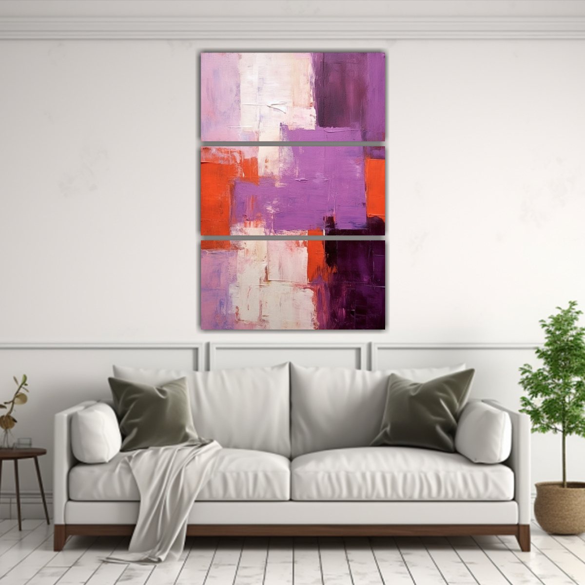 Este cuadro es perfecto para decorar tu sala de estar o comedor Su combinación de tonos púrpura y malva le dará un toque de elegancia y sofisticación a tu espacio Puedes colocarlo sobre una pared de color neutro para que resalte aún más Además, puedes combinarlo con cojines y accesorios en tonos similares para crear una armonía en la decoración ¡Atrévete a darle un toque moderno y artístico a tu hogar con este cuadro!