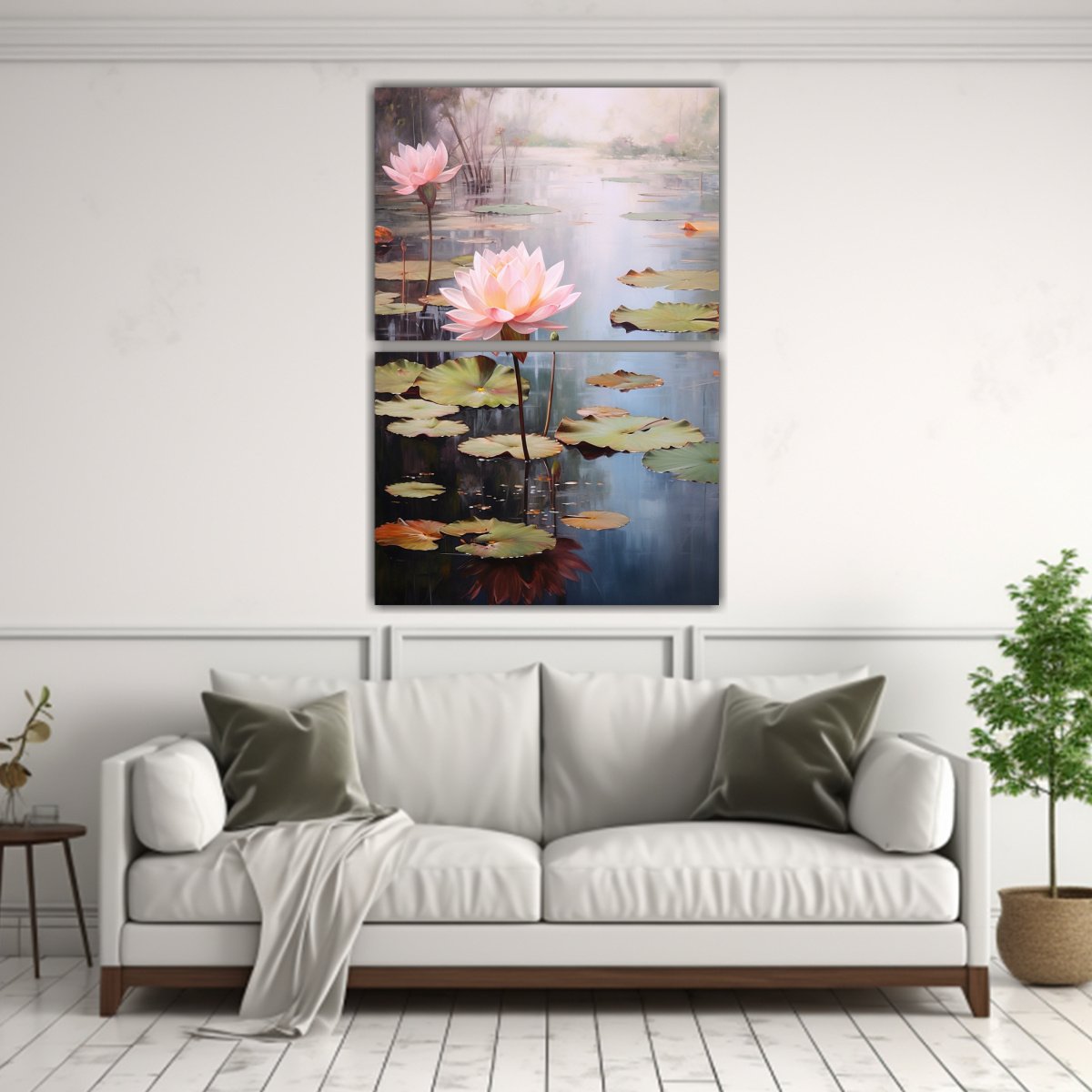Cuadro Decorativo Moderno De Loto En Un Estanque Set 2 Lienzos De Tela