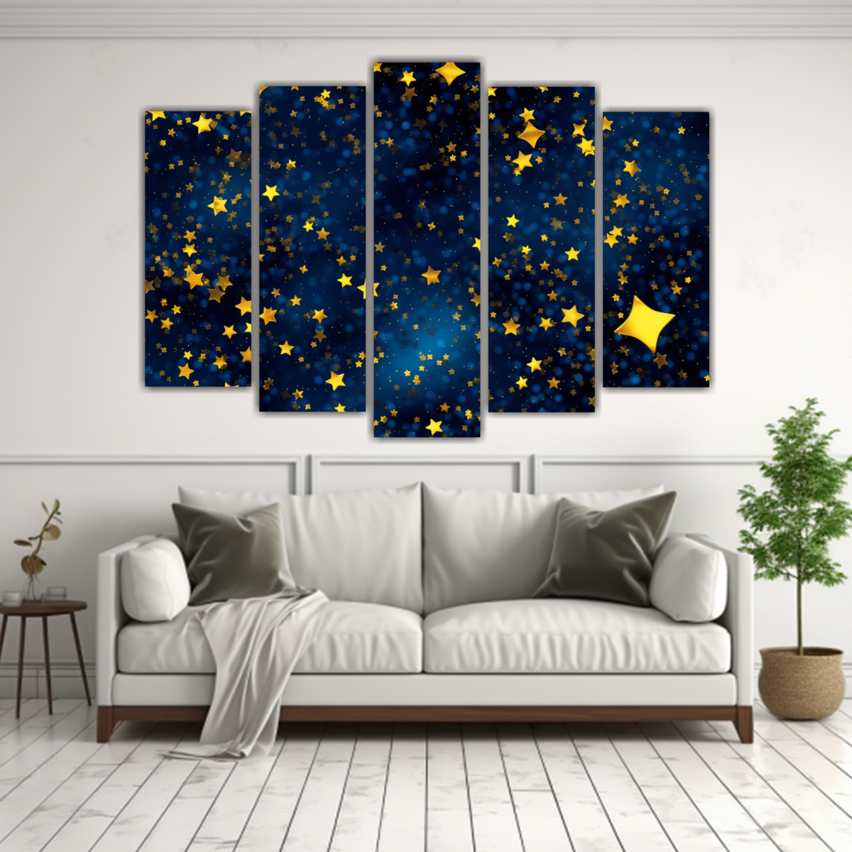 Renueva tu hogar con este moderno cuadro estrellado en tonos azul oscuro y amarillo Aporta un toque de elegancia y estilo a tus espacios Ideal para salas de estar, dormitorios o espacios de relajación Combínalo con muebles en tonos neutros para resaltar su belleza