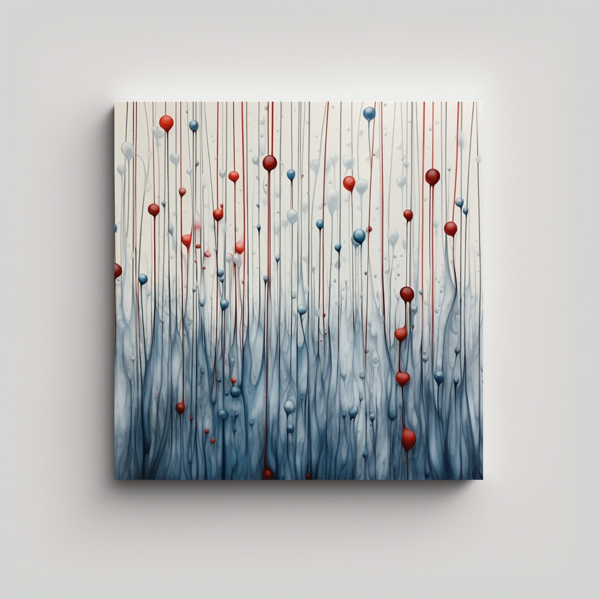 Cuadro Decorativo: Movimiento Urbano En Bastidor Con Líneas Azules Y Gotas Rojas.