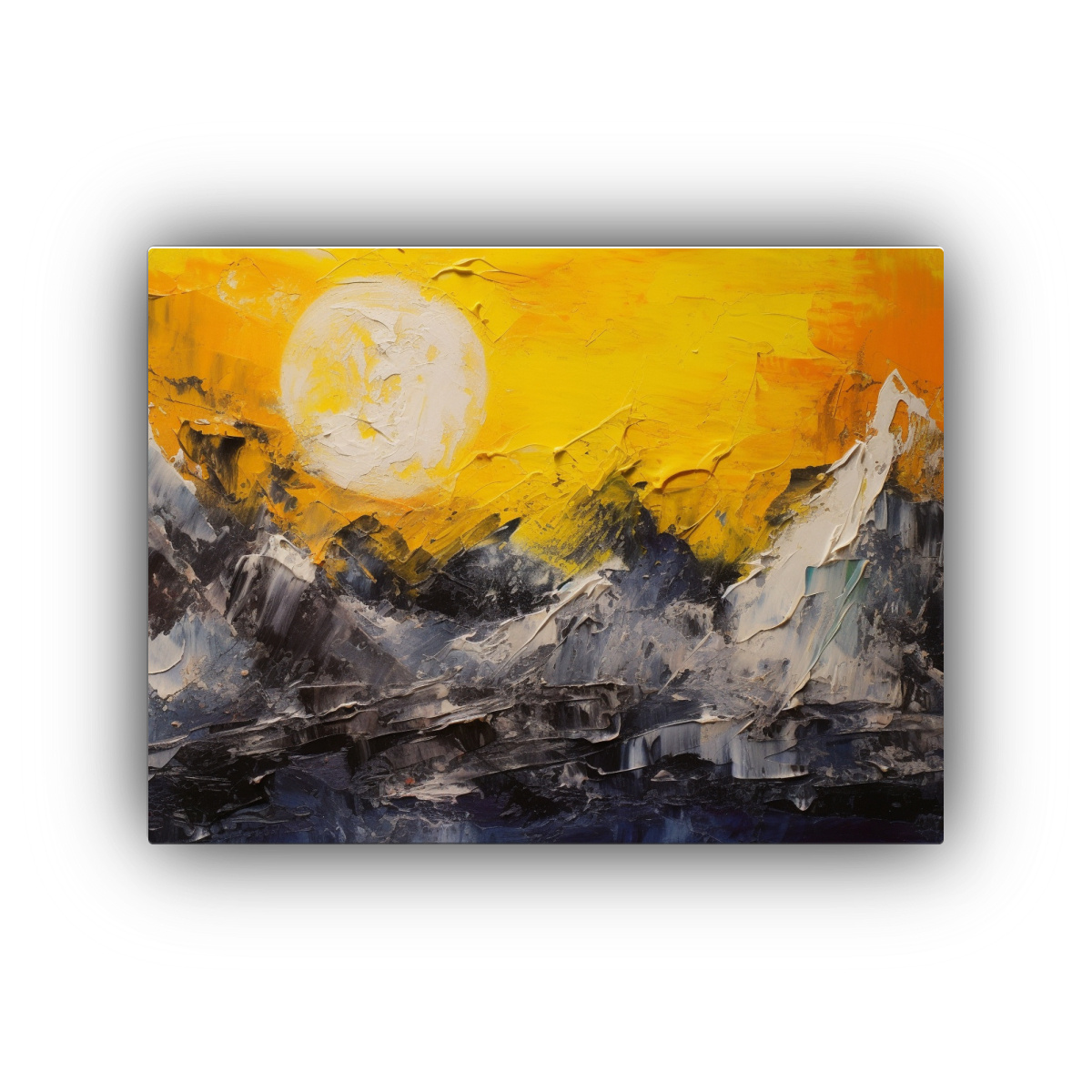 Cuadro Decorativo: Noche Profunda Con Luna Amarilla Y Montañas