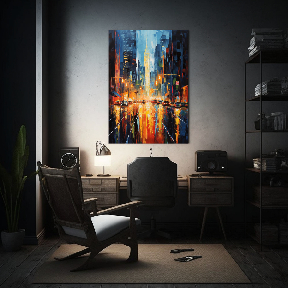 Este cuadro sería perfecto para decorar tu sala de estar o estudio Combínalo con muebles en tonos neutros y accesorios en colores vivos para crear un ambiente moderno y vibrante También puedes colocarlo en un pasillo para añadir un toque artístico a tu hogar ¡Deja volar tu imaginación y dale vida a tus espacios con nuestro cuadro decorativo nocturno de arte callejero!