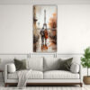 El Cuadro decorativo Pareja joven caminando frente a la Torre Eiffel es perfecto para aquellos que buscan añadir un toque romántico y sofisticado a su hogar Con colores como el Azul Marino grisaceo, Beige, Chocolate, Dorado, Gris y Plateado, este cuadro se convertirá en el centro de atención de cualquier habitación