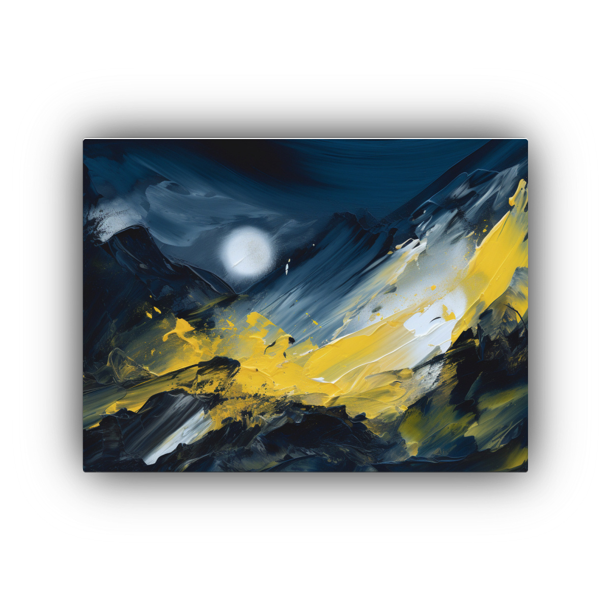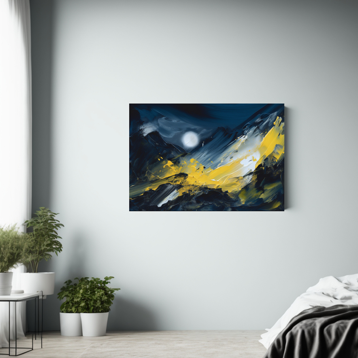 Cuadro Decorativo: Pequeña Luna Amarilla En Cielo Oscuro Y Azul.