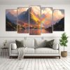 Cuadro Decorativo Relieve Montañas Junto Lago Arcoíris Dorado