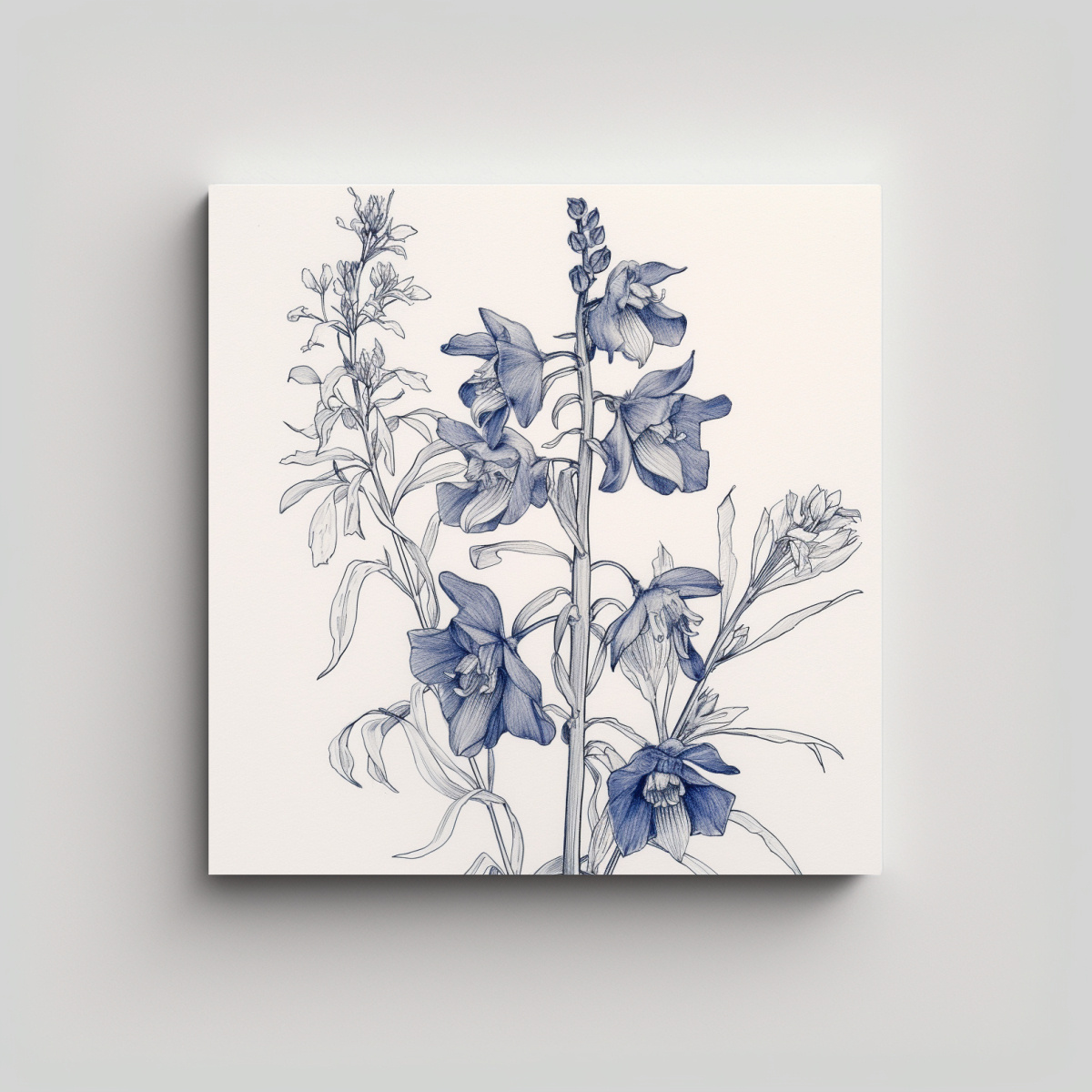 Cuadro Decorativo Resistente: Tela Con Líneas Finas De Flores Larkspur