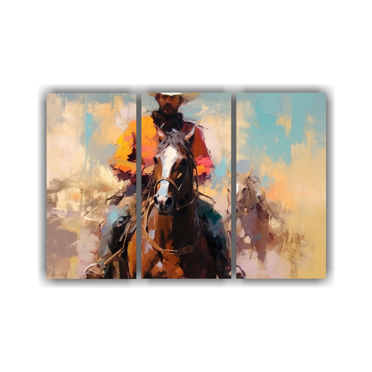 Para realzar la decoración, coloca este cuadro en la sala principal sobre un sofá de color neutro Su combinación de colores y el retrato del cowboy a caballo añadirán un toque de elegancia y estilo western a tu hogar