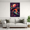 Este cuadro sería perfecto para decorar una sala de estar moderna con un toque retro Colócalo sobre un sofá negro o blanco para resaltar sus colores vibrantes Combínalo con cojines y cortinas en tonos similares para crear una armonía visual ¡Dale a tu espacio un estilo único con este cuadro exclusivo de nuestra tienda!