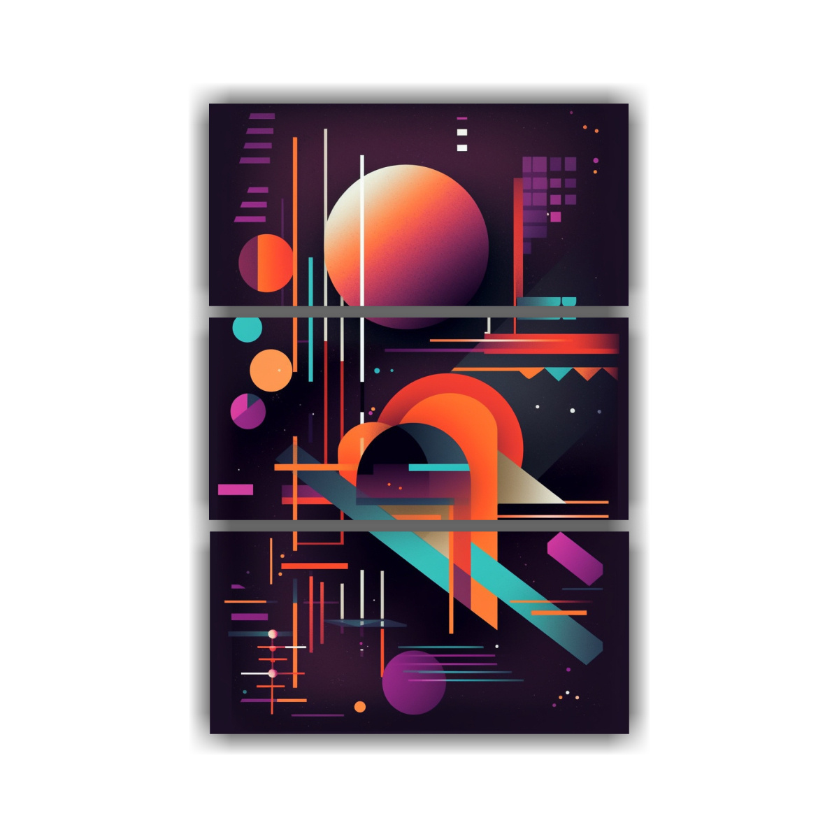 Cuadro Decorativo Set 3 Artes Colores Alegría Con Símbolos Estilo Años 80 Sobre Fondo Oscuro