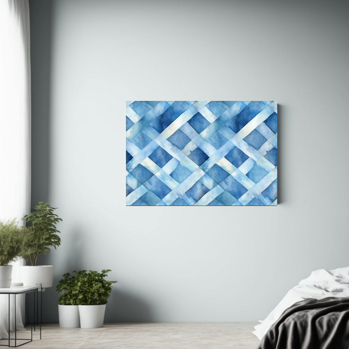 Este cuadro azul con patrón diagonal es perfecto para decorar tu sala de estar o dormitorio Combínalo con muebles en tonos neutros o con detalles en verde para crear un ambiente fresco y relajante
