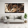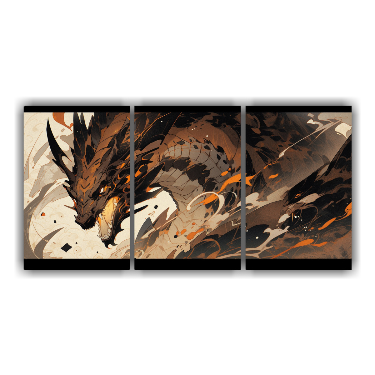 Cuadro Decorativo Tríptico De Dragón En Tonos Marrón Y Negro Para Comedor