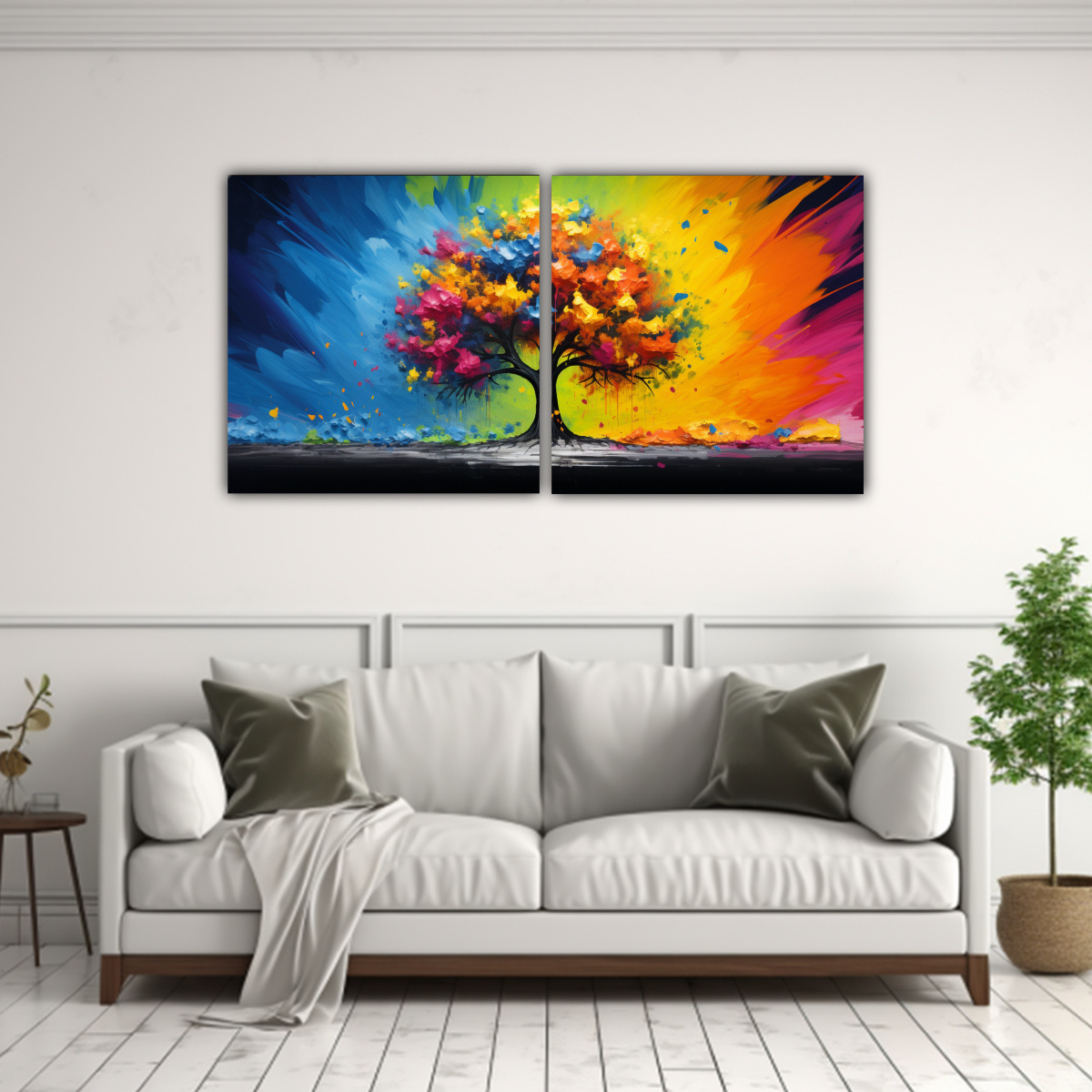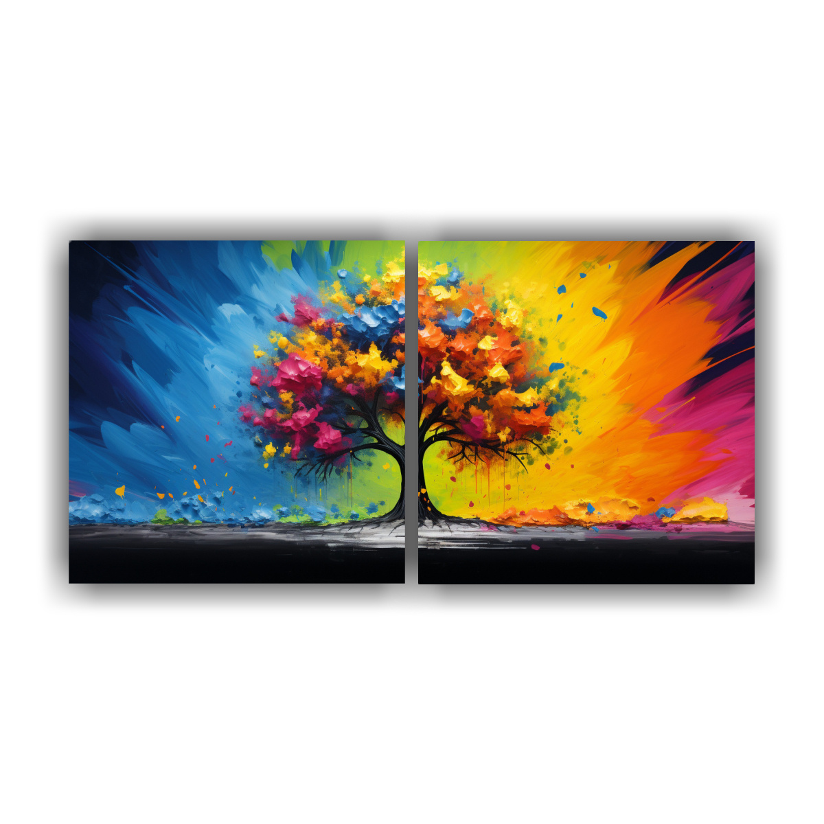 DecoCuadros ofrece el cuadro Un árbol de álamo en colores del arco iris en ambiente neonoir con diseño exclusivo y alta calidad Decora tu hogar con este hermoso cuadro y aprovecha nuestras entregas rápidas y gratuitas en Santiago