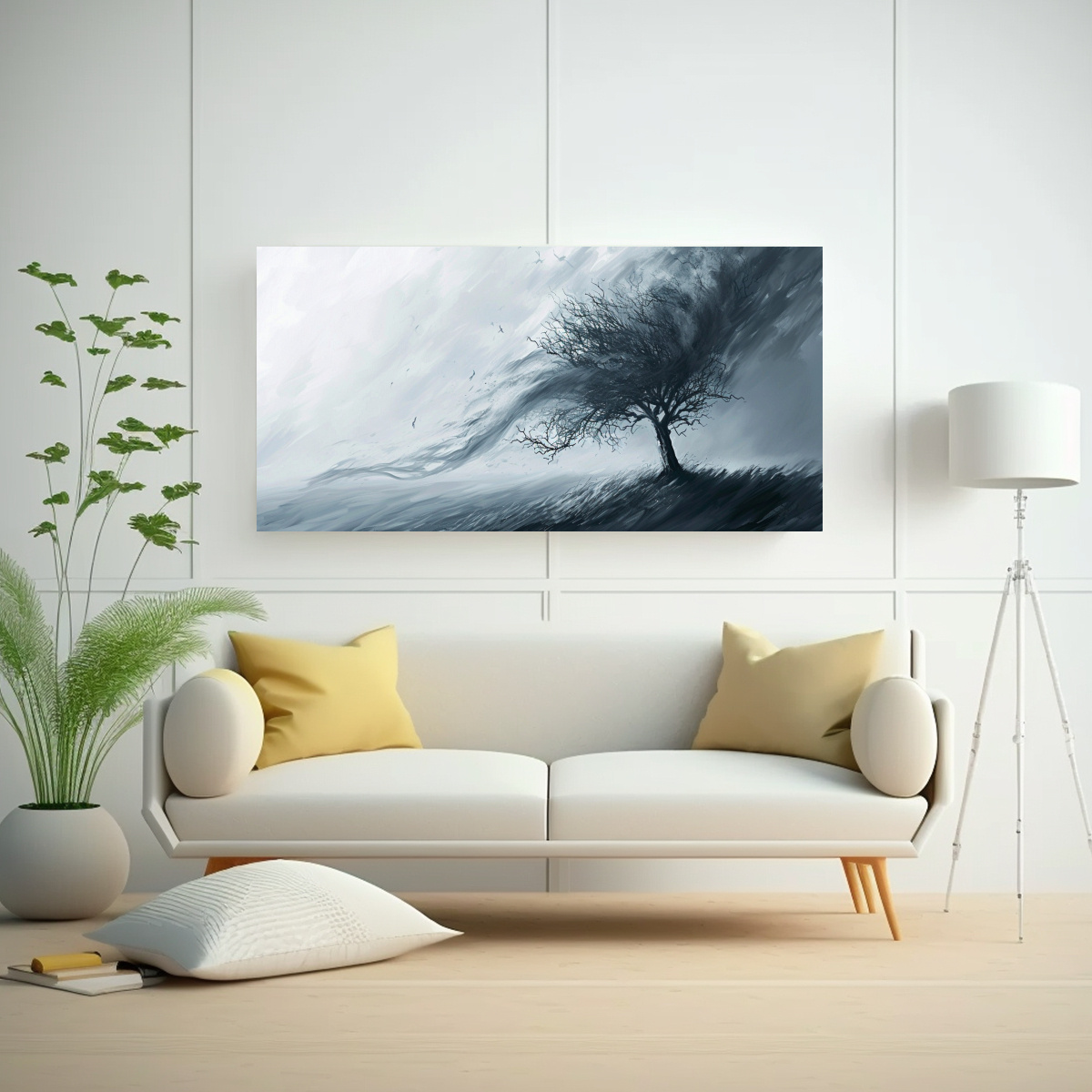 Decora con estilo tu hogar u oficina con este impactante cuadro de viento extremo en tonos beige, azul marino grisáceo, gris y plateado Atrévete a destacar con elegancia