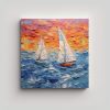 Cuadro Decorativo: Vista Aérea De Un Vasto Mar Con Dos O Tres Veleros Coloridos.
