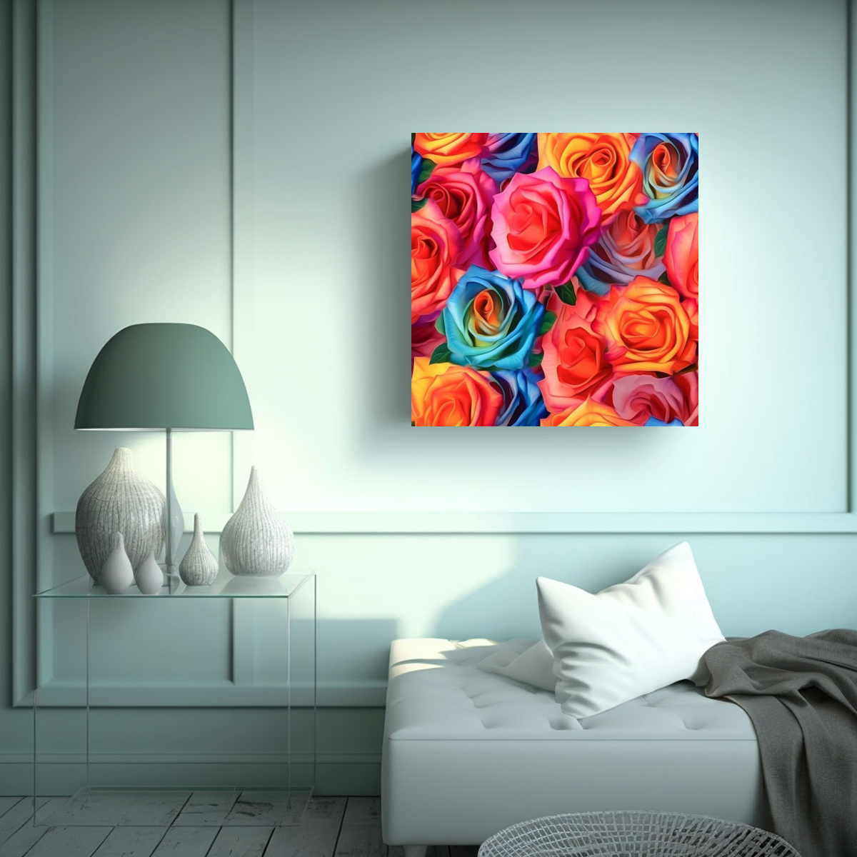 Cuadro Detalle Inspirador De Rosas Coloridas Y Hermosas Con Rocío