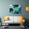 Cuadro Dibujo Belleza Abstracto Azul Y Dorado, Estilo Elegante.